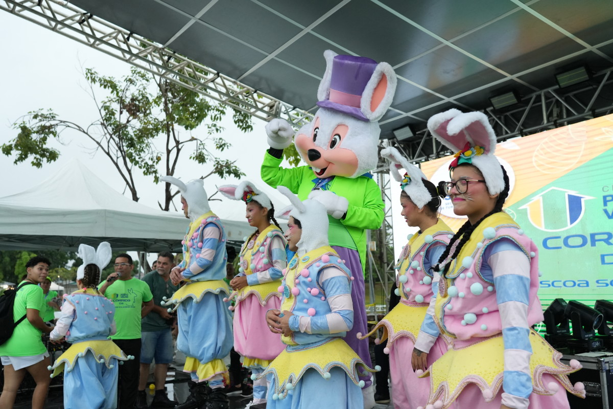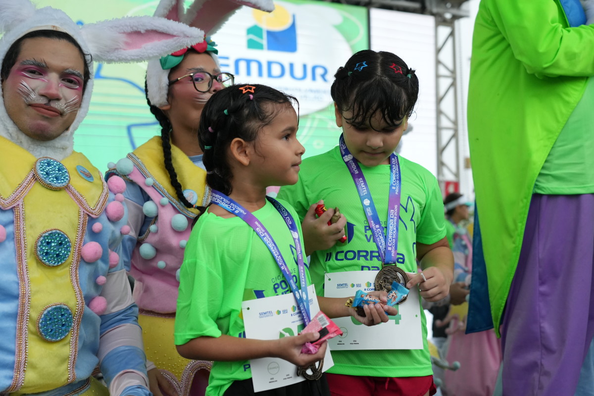 Fábia Regina, mãe do pequeno Heitor da Silva Mendes, de apenas oito anosDiferente dos adultos, que correram pelas ruas no entorno do parque, as crianças competiram em um percurso montado dentro da própria estrutura do Parque da Cidade. E levaram a disputa a sério, com direito a aquecimento ao lado da turma do Coelhinho da Páscoa, minutos antes da largada.