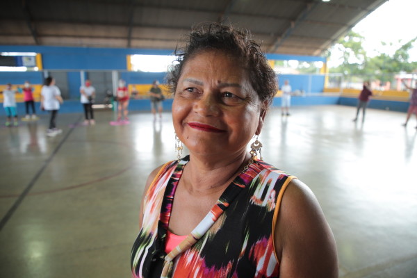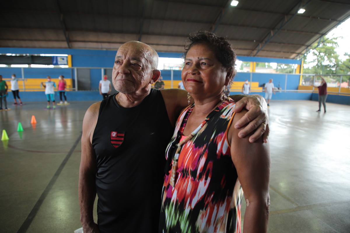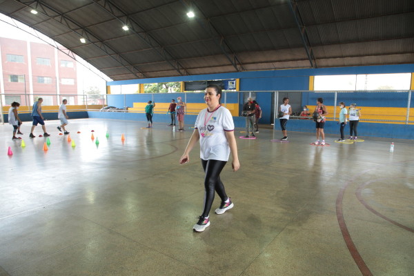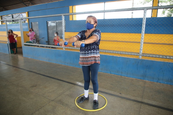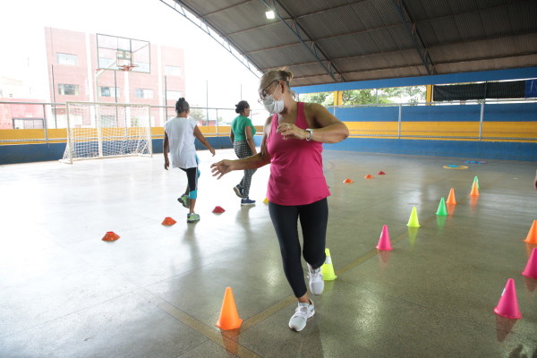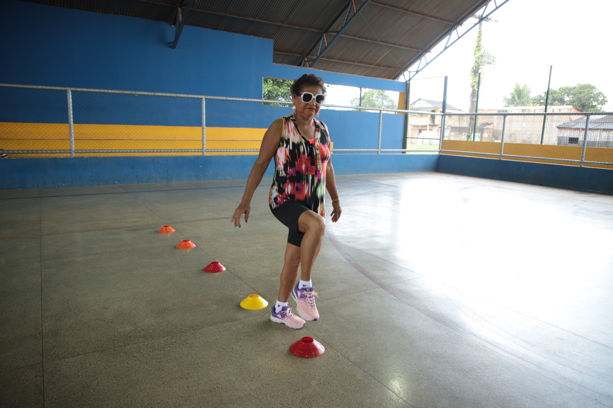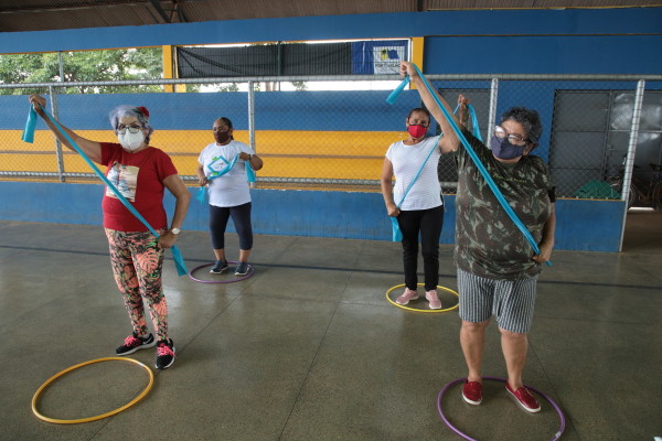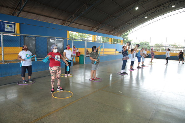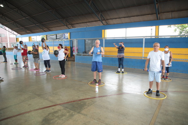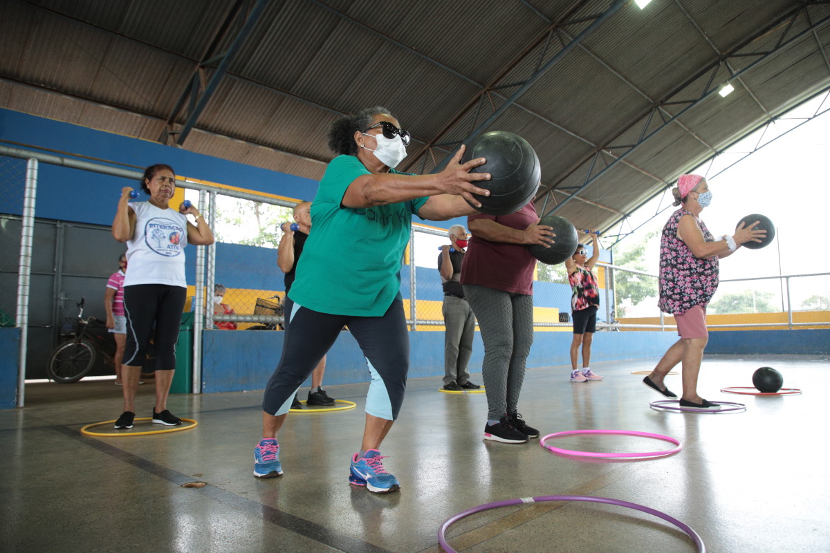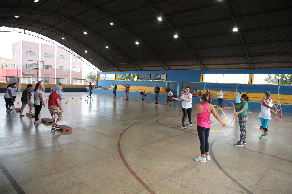 Aula do Projeto Viver Ativo realizada quarta-feira (27/04) na quadra poliesportiva Sérgio Siqueira de Carvalho, bairro Esperança da Comunidade.