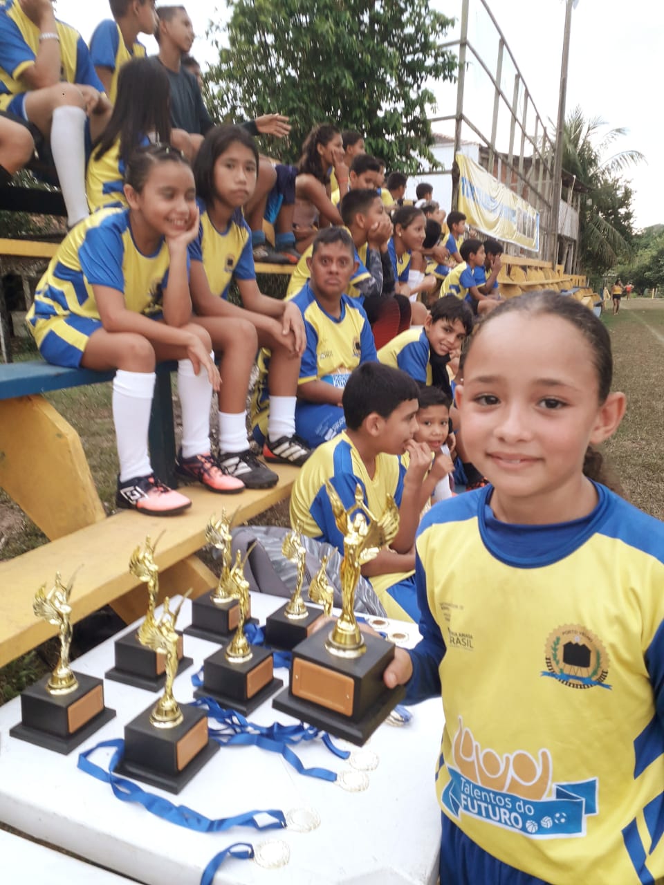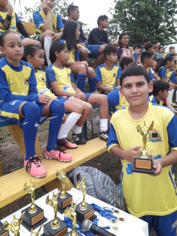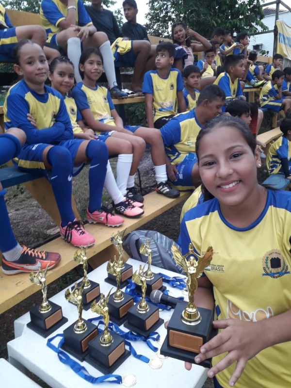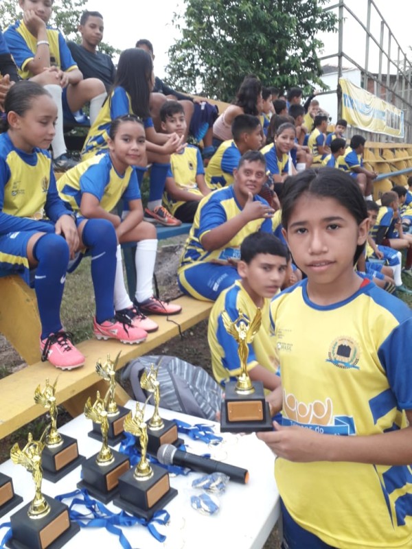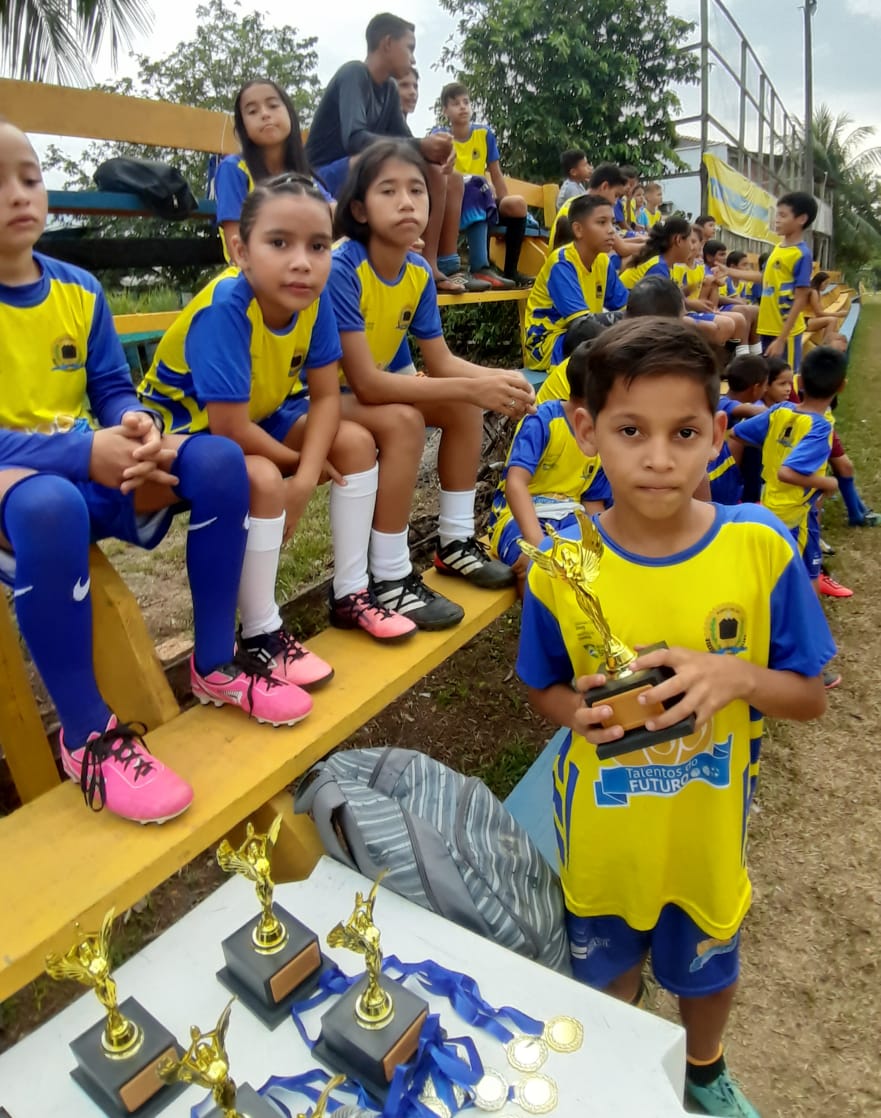 No último sábado (02), a turminha da escolinha de Futebol do Programa de Iniciação Esportiva Talentos do Futuro, do distrito de Calama, participou de um Jogo de Confraternização e entrega de medalhas. Os destaques do Futebol receberam troféus. O evento, q