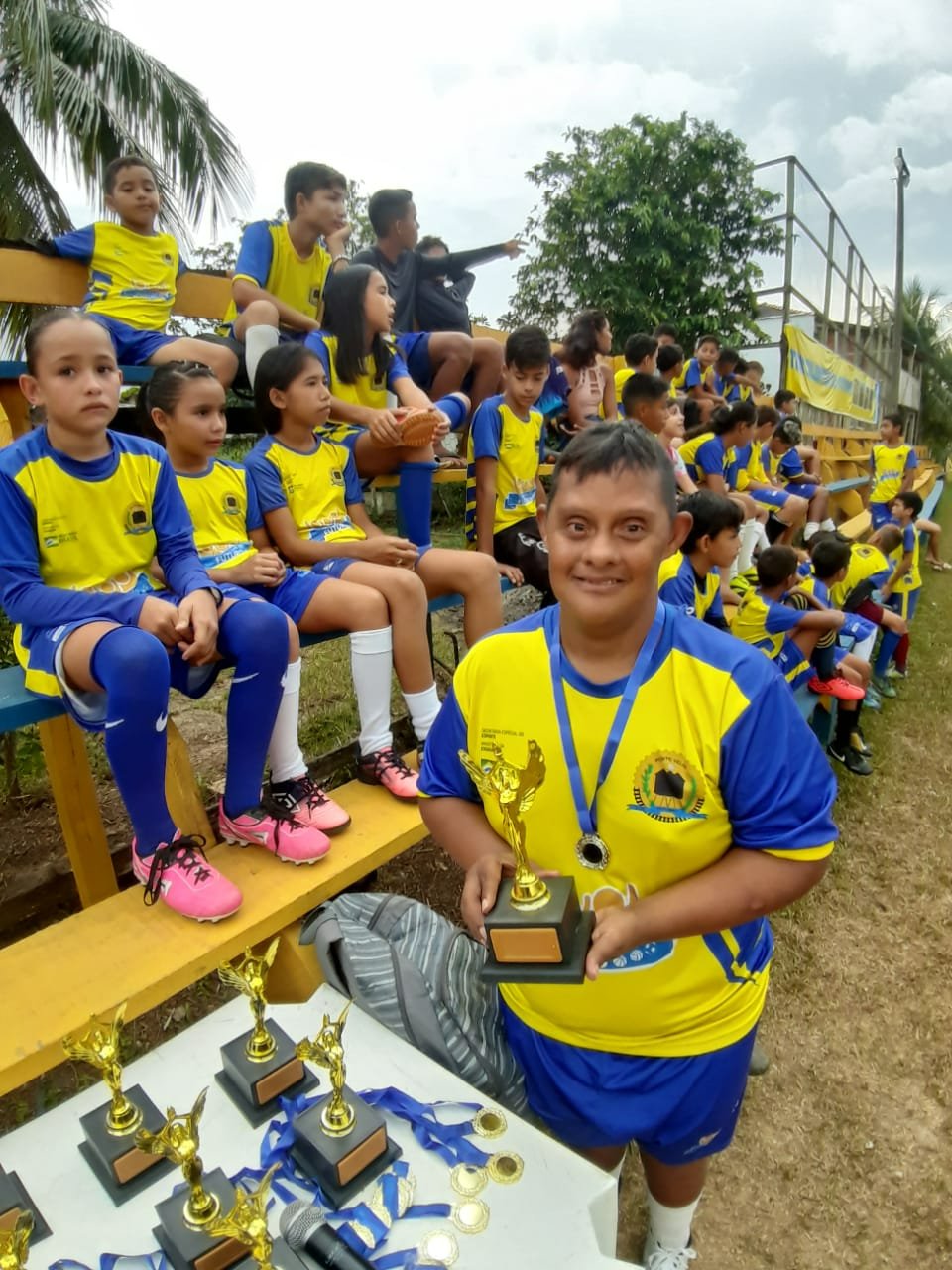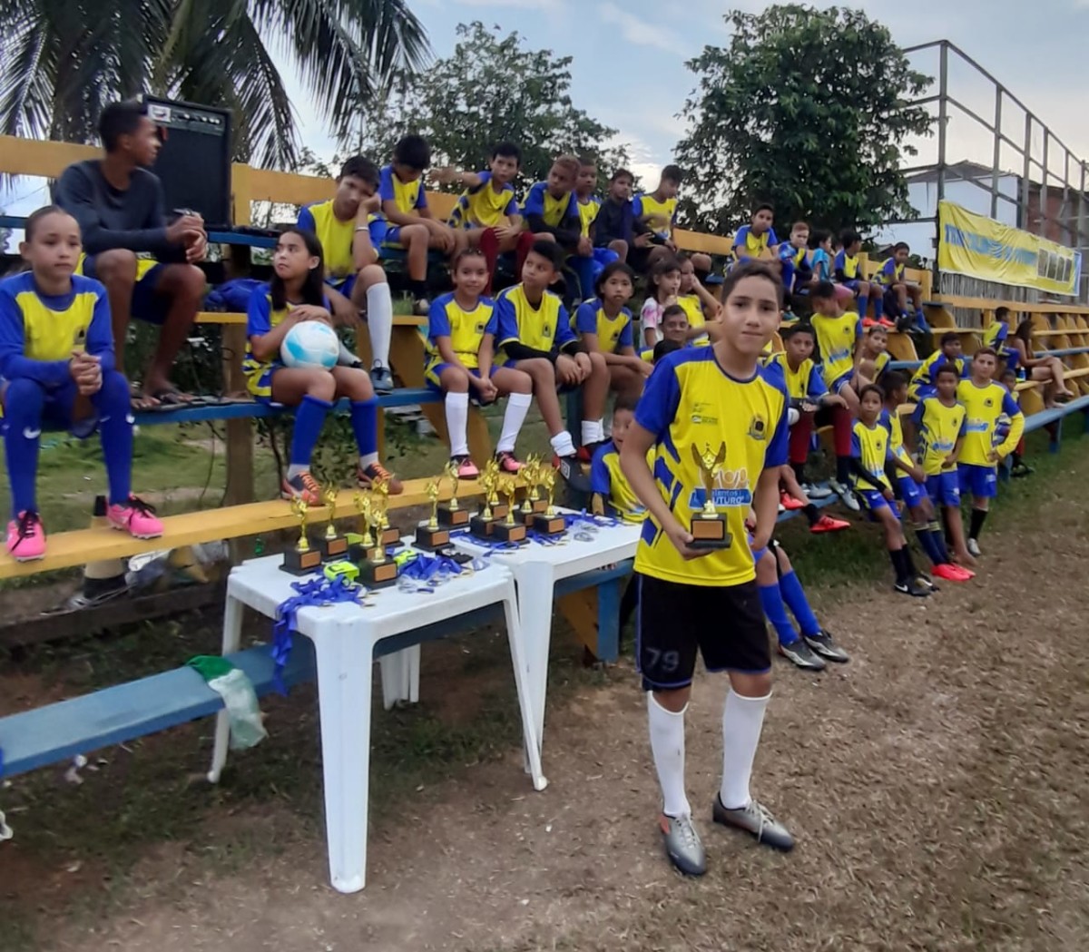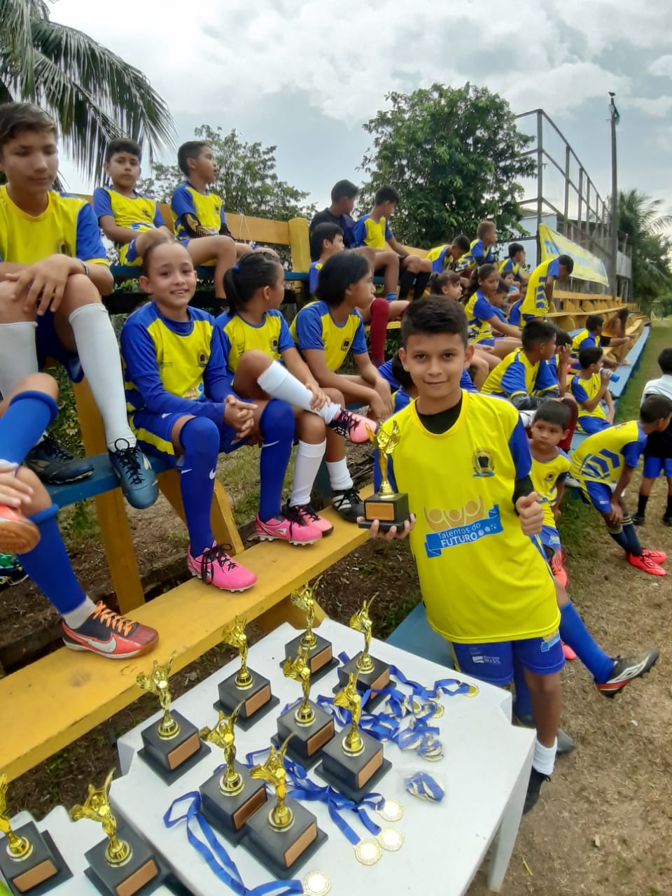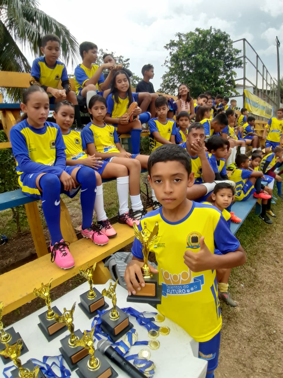 No último sábado (02), a turminha da escolinha de Futebol do Programa de Iniciação Esportiva Talentos do Futuro, do distrito de Calama, participou de um Jogo de Confraternização e entrega de medalhas. Os destaques do Futebol receberam troféus. O evento, q